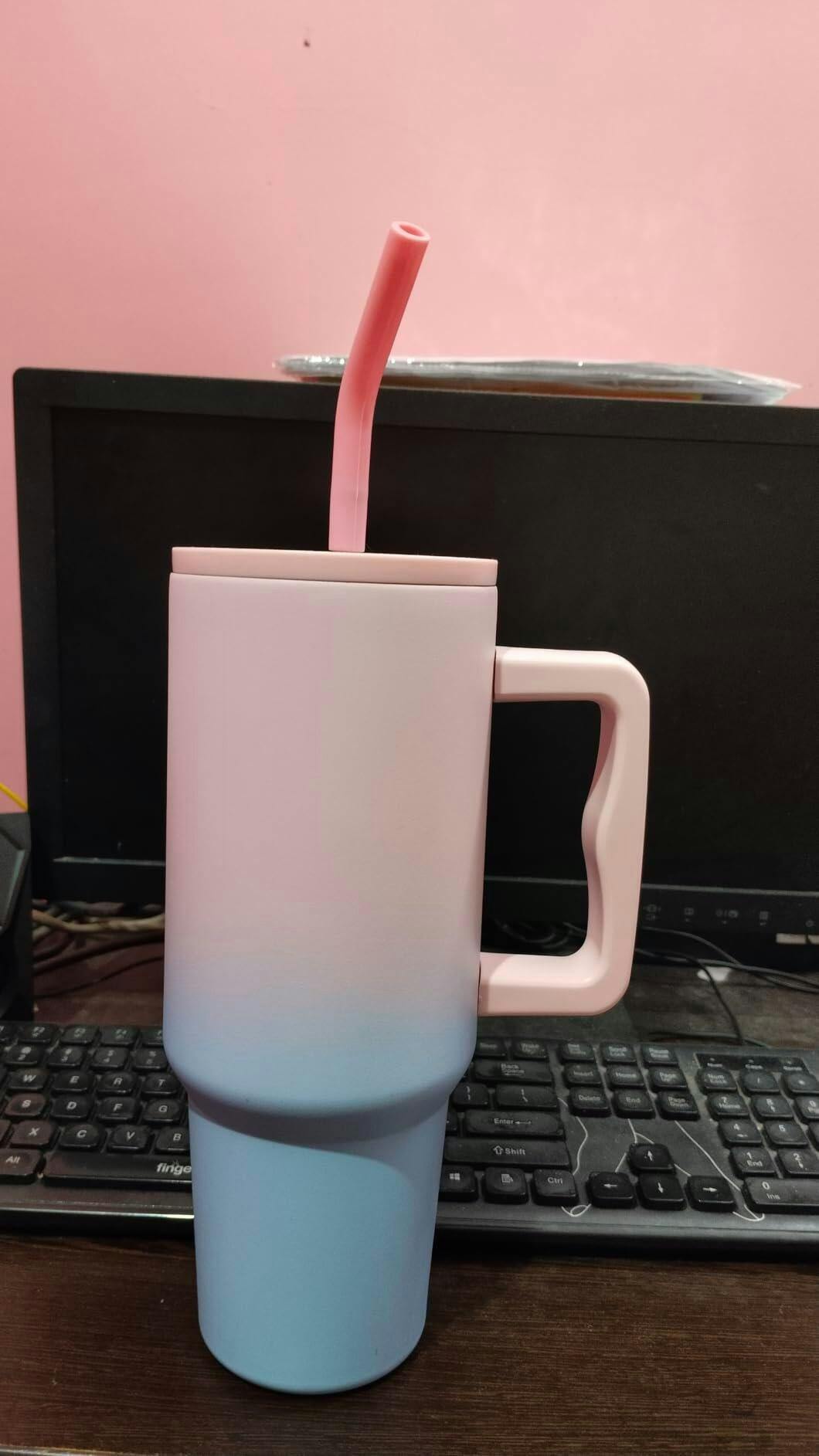 - π πππ π§π’ πππ§ π¬π’π¨π₯ ππππ: The ergonomic, handle lets you quickly grab this cute tumbler with straw and go; Fits comfortably in the cupholders in your car or on exercise machines; Easy to clean and dishwasher safe.